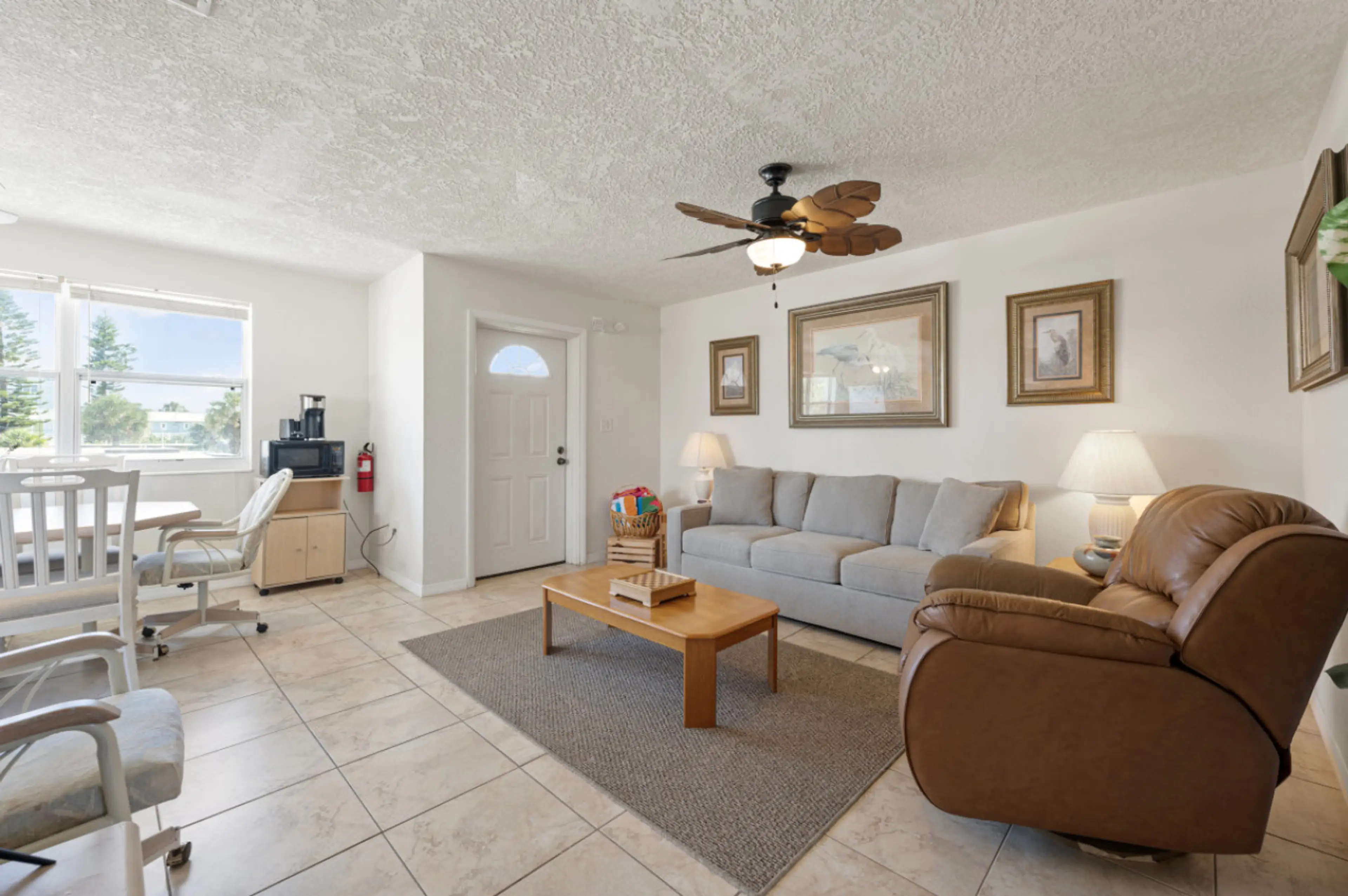 Enjoy stunning ocean views from this oceanside 2BR/1BA condo featuring two queen bedrooms and an open floor plan with full kitchen and dining area. The beach is just steps away with direct access, plus prime views of SpaceX launches and passing cruise ships. Located in a quiet yet central neighborho...